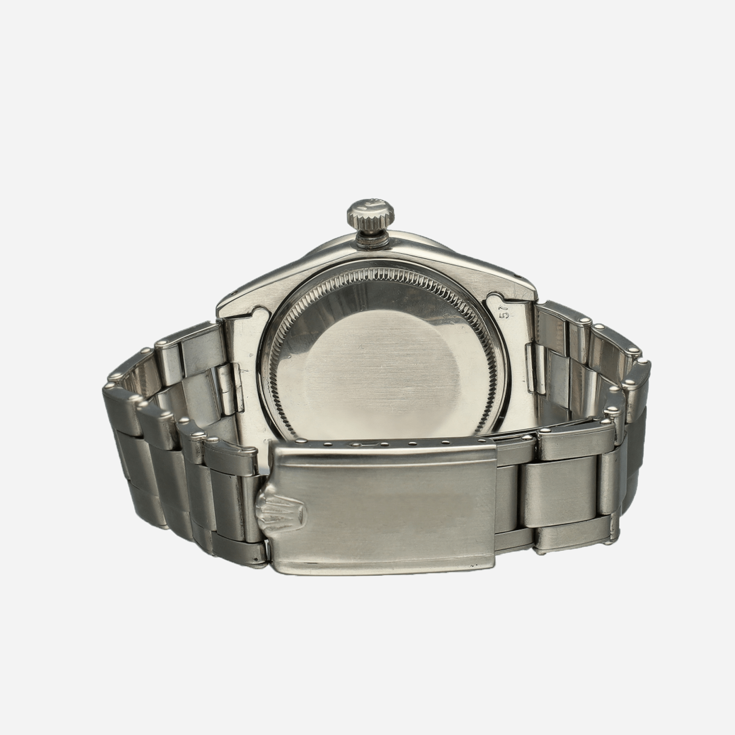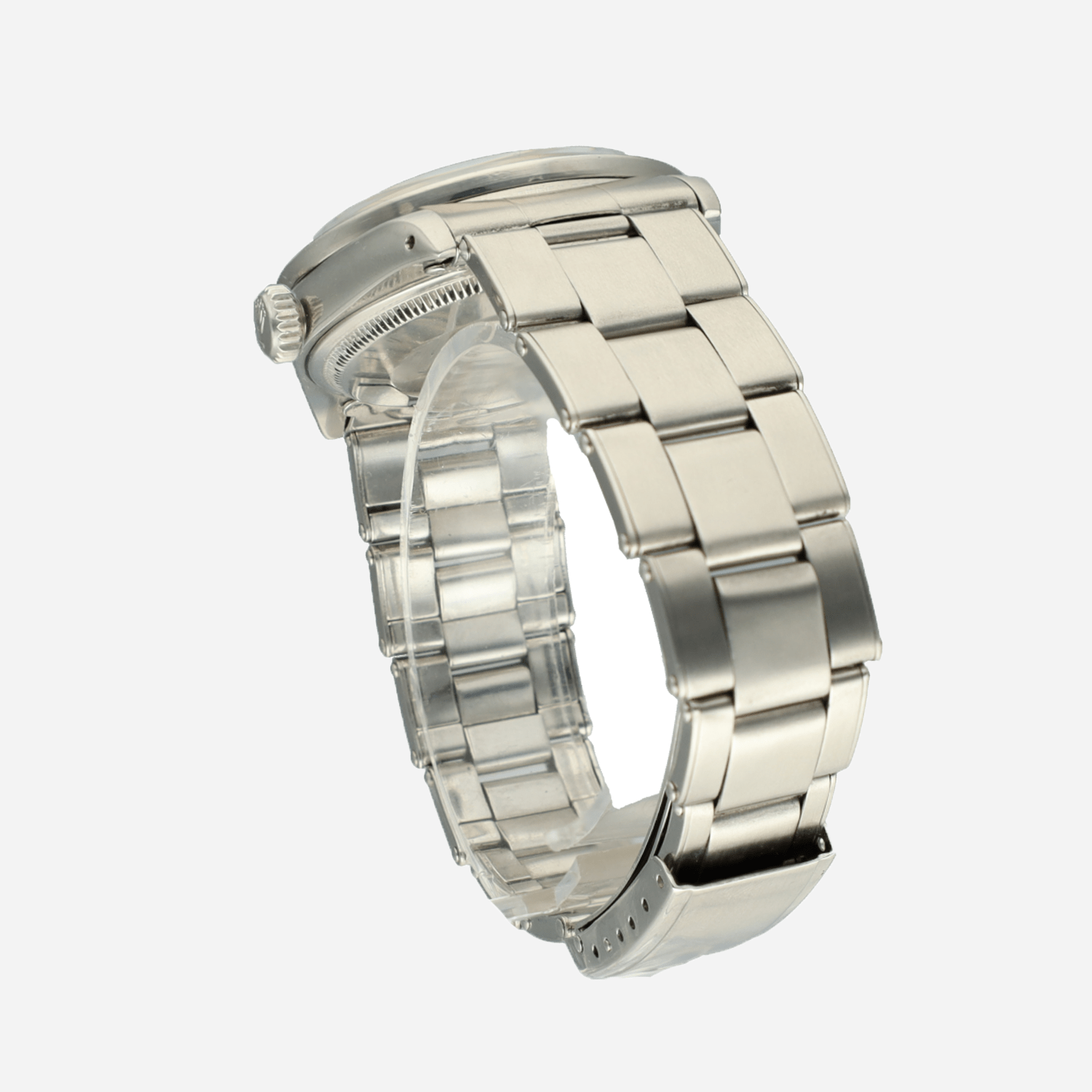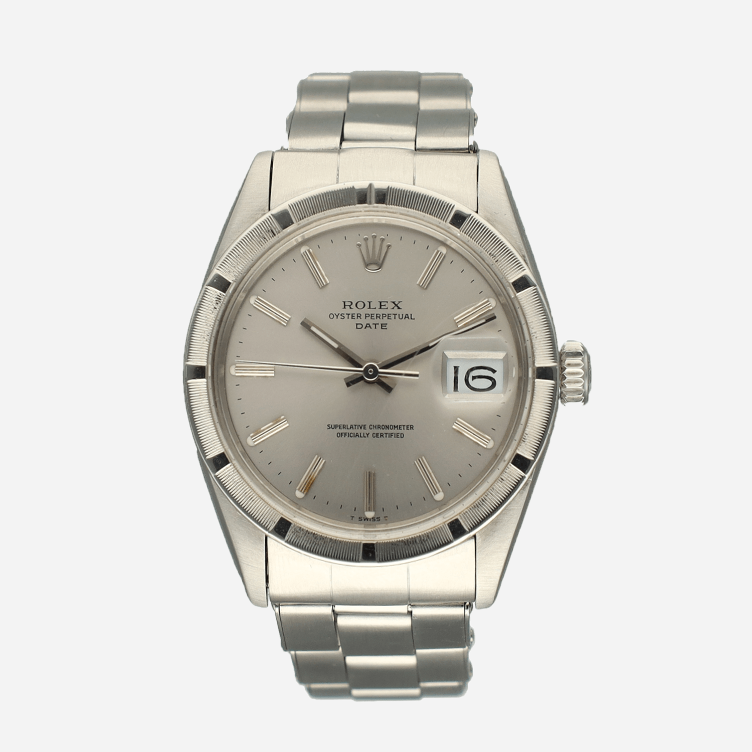 Rolex Oyster Perpetual Date Ref. 1501 de 1966 es un reloj en muy buenas condiciones, que representa la esencia de la relojería clásica de Rolex. Su caja está fabricada en acero inoxidable, con un diseño robusto y elegante que se adapta a cualquier ocasión. La esfera, en un tono plateado, presenta índices aplicados y la ventana de fecha a las 3 en punto, realzando su funcionalidad y estilo atemporal. Con un diámetro de 34 mm, este modelo alberga el movimiento automático calibre 1570, conocido por su precisión y fiabilidad. El Oyster Perpetual Date 1501 es una pieza icónica que combina la durabilidad y la elegancia de Rolex. Se entrega con documentacion y caja original.