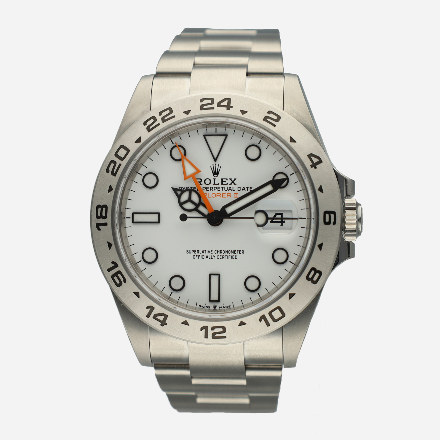 | El Rolex Explorer II, referencia 226570, es una de las piezas más emblemáticas para los amantes de la aventura y la exploración. Este modelo en particular, con número de serie 0M2202F0, cuenta con una imponente caja de 42 mm de diámetro y se entrega con documentación original, lo que lo convierte en una opción ideal tanto para coleccionistas como para apasionados de la relojería de alto nivel.