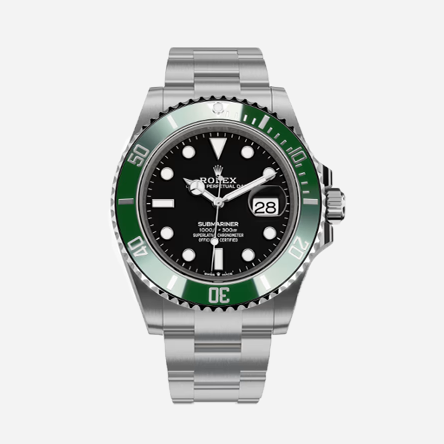 Conocido popularmente como «Kermit», es una edición especial que combina elegancia y funcionalidad en un diseño iconográfico. Presenta una caja de acero inoxidable con un diámetro de 41 mm, y se distingue por su bisel verde de cerámica, un homenaje al modelo original de 2003 que introdujo el color. Su esfera negra cuenta con índices luminosos y manecillas en oro blanco, lo que asegura una legibilidad óptima en cualquier condición. Equipado con el movimiento automático Calibre 3235, el Kermit ofrece una reserva de marcha de aproximadamente 70 horas y cuenta con la certificación Chronometer, garantizando precisión y fiabilidad. Su resistencia al agua hasta 300 metros lo convierte en el compañero ideal para los amantes del buceo.
